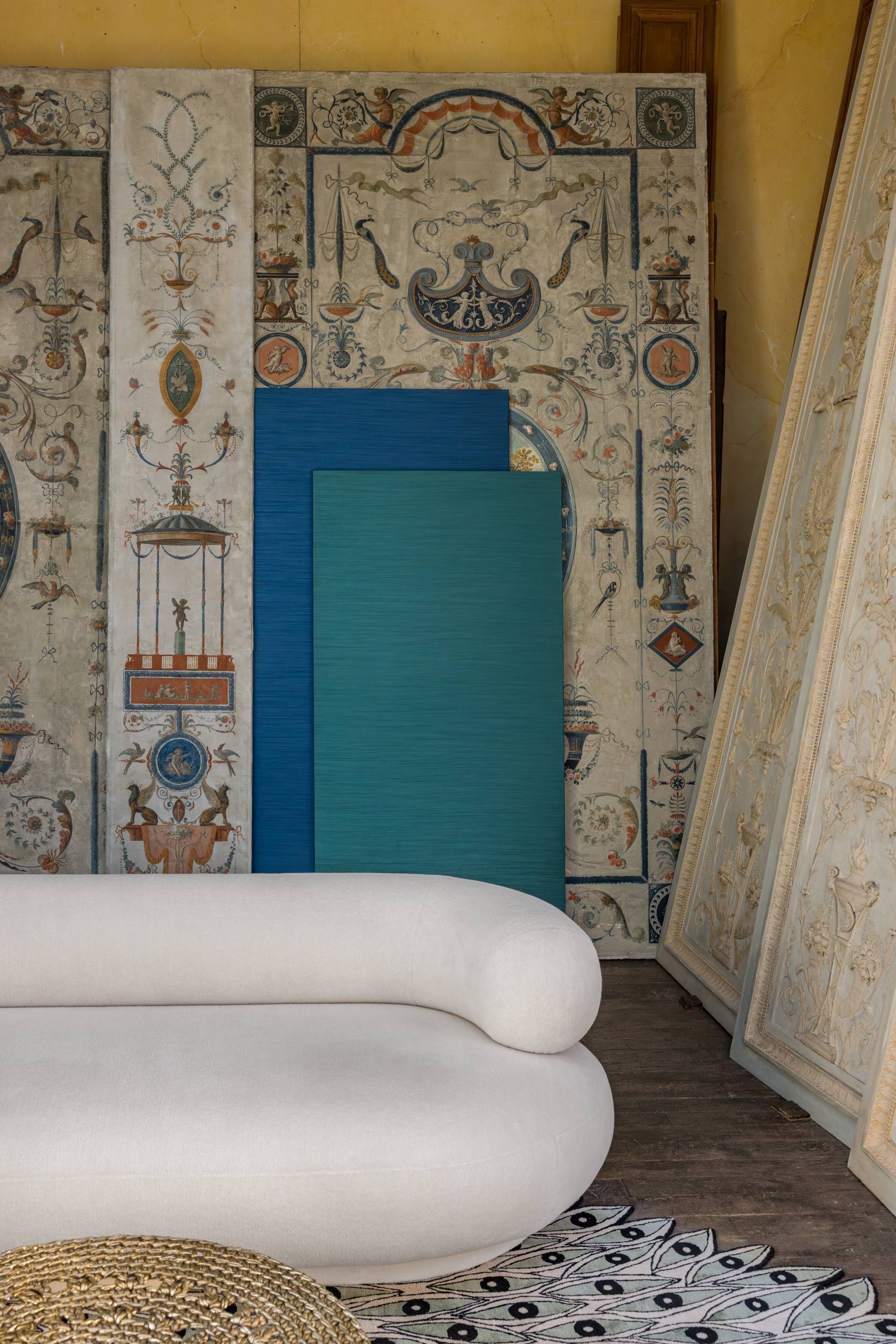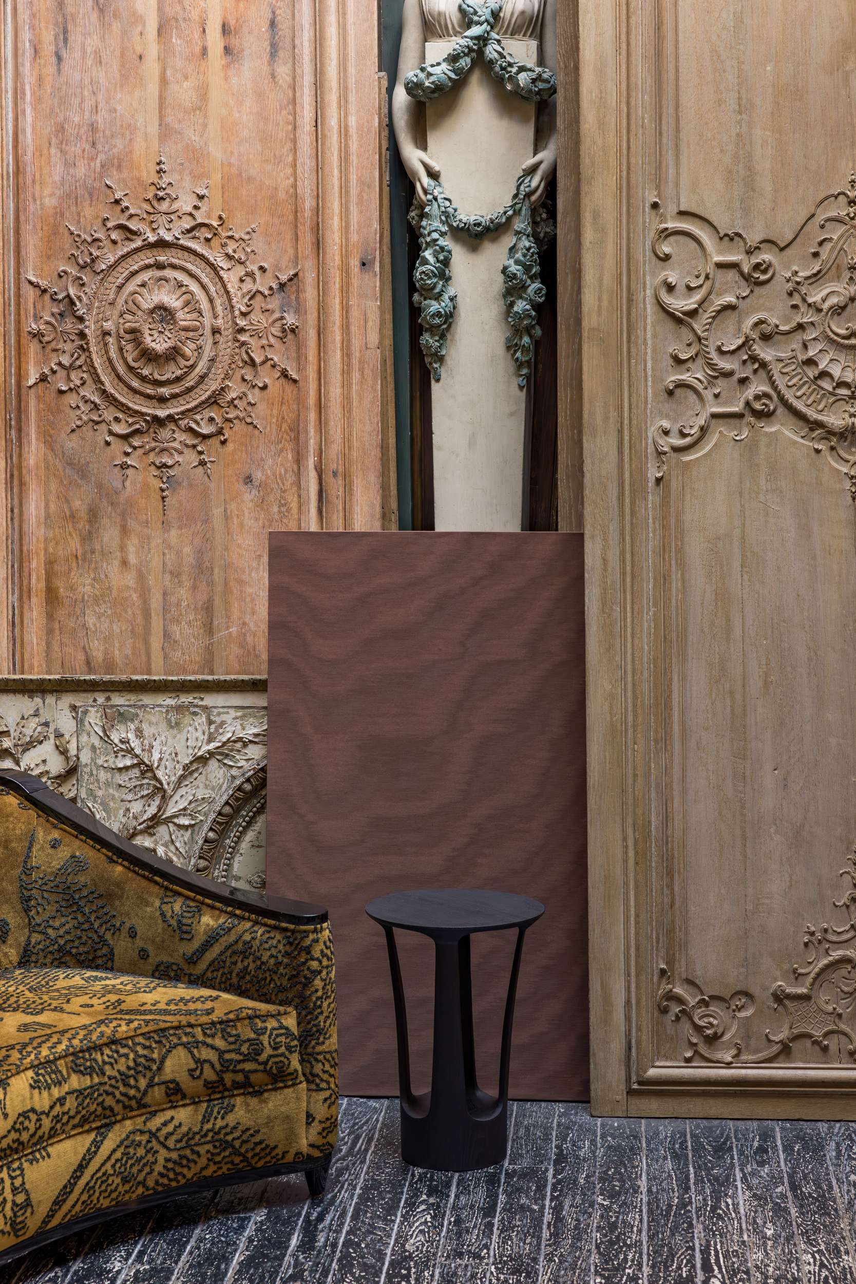 Dedar präsentiert eine Textilinstallation im magischen Ort Féau Boiseries, Frankreichs größter Privatsammlung von Holzvertäfelungen aus dem 17. Jahrhundert bis heute.